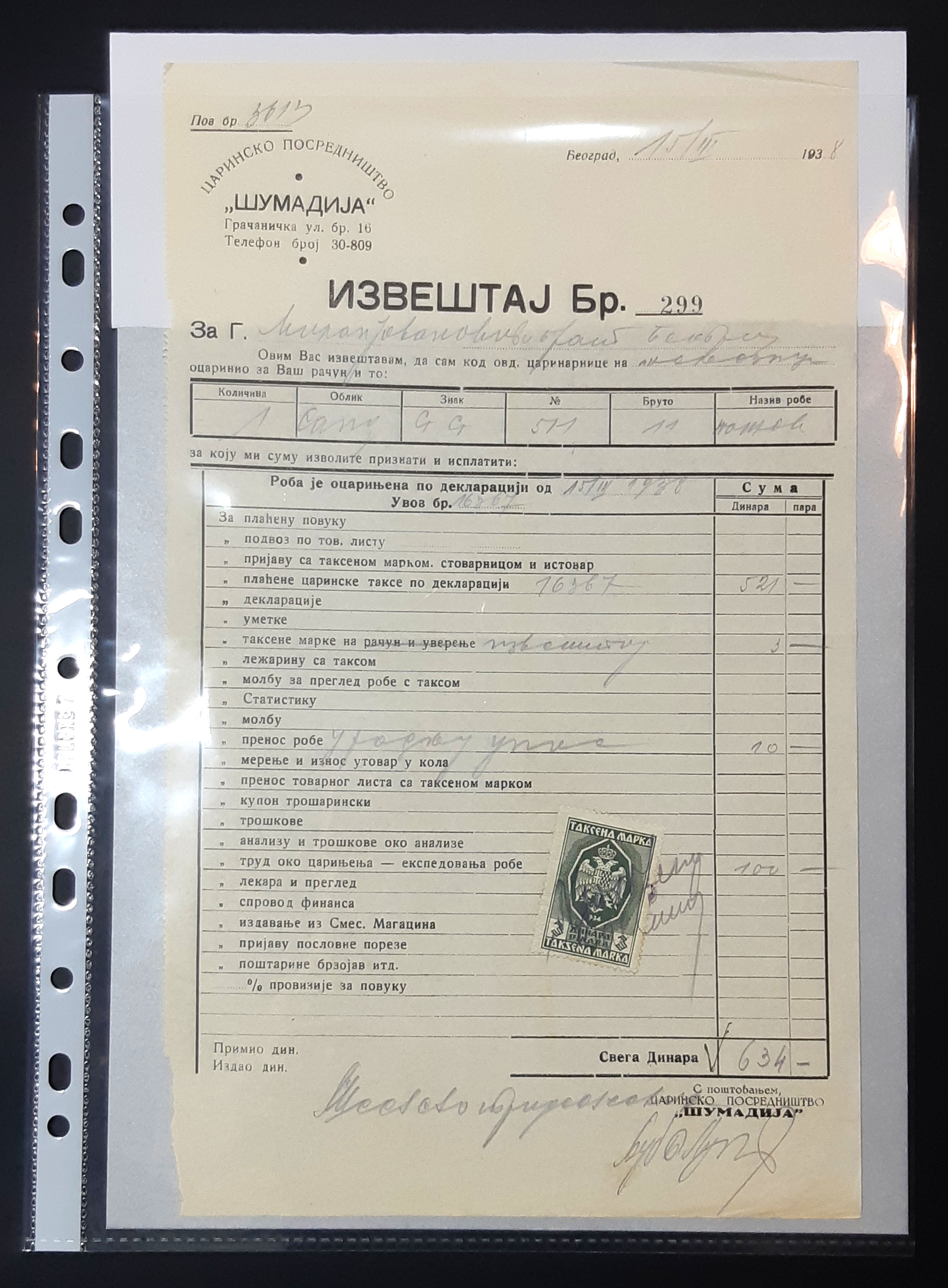 - Račun iz Kraljevine Jugoslavije, 1938. godina