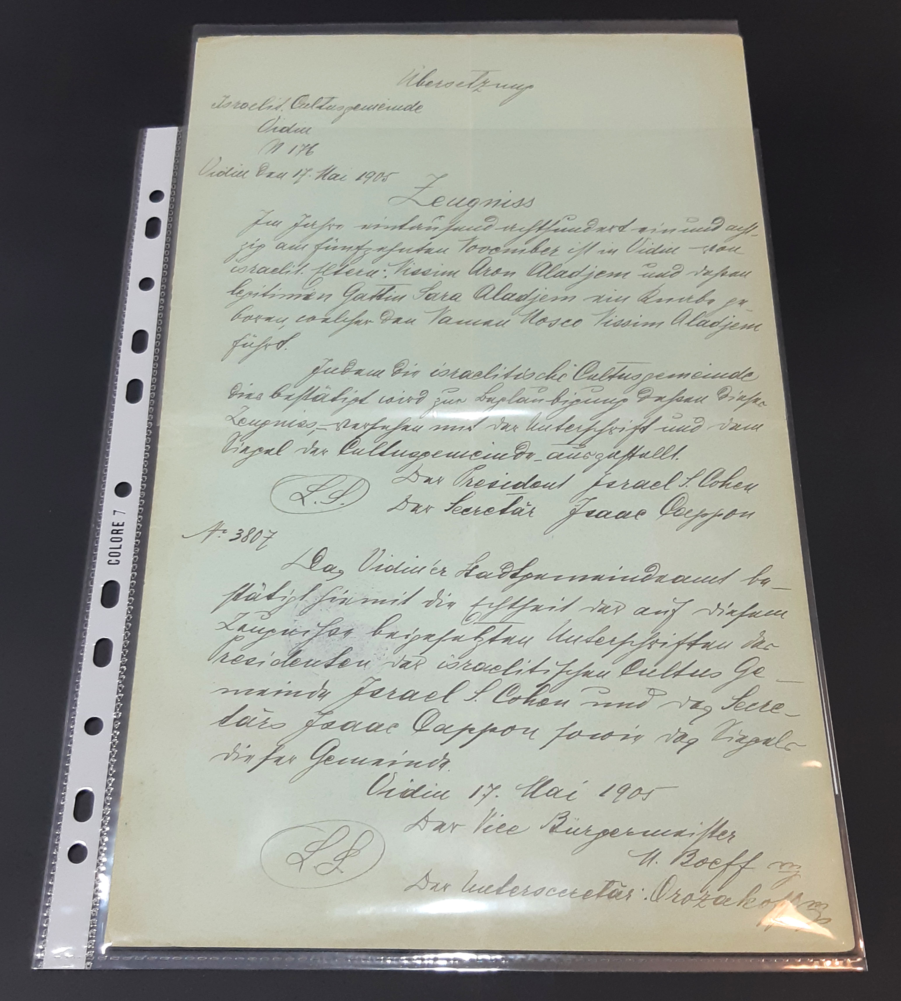Ovaj dokument je, tačnije svedočanstvo o rođenju Moše Kisun Aladžema,
