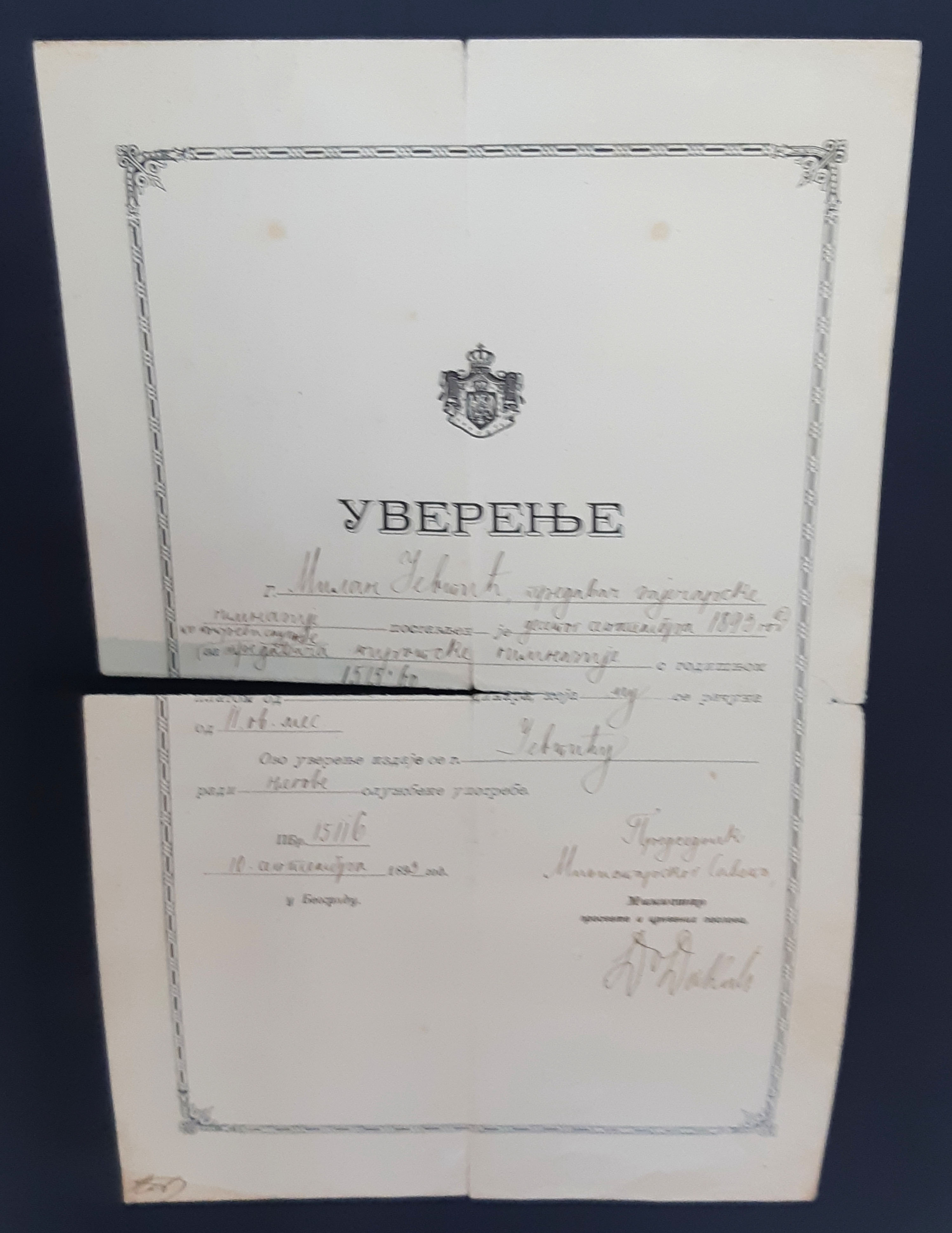 Ovo je veoma stari, istorijski vredan dokument iz vremena Kraljevine Srbije, izdat od zvanične institucije,