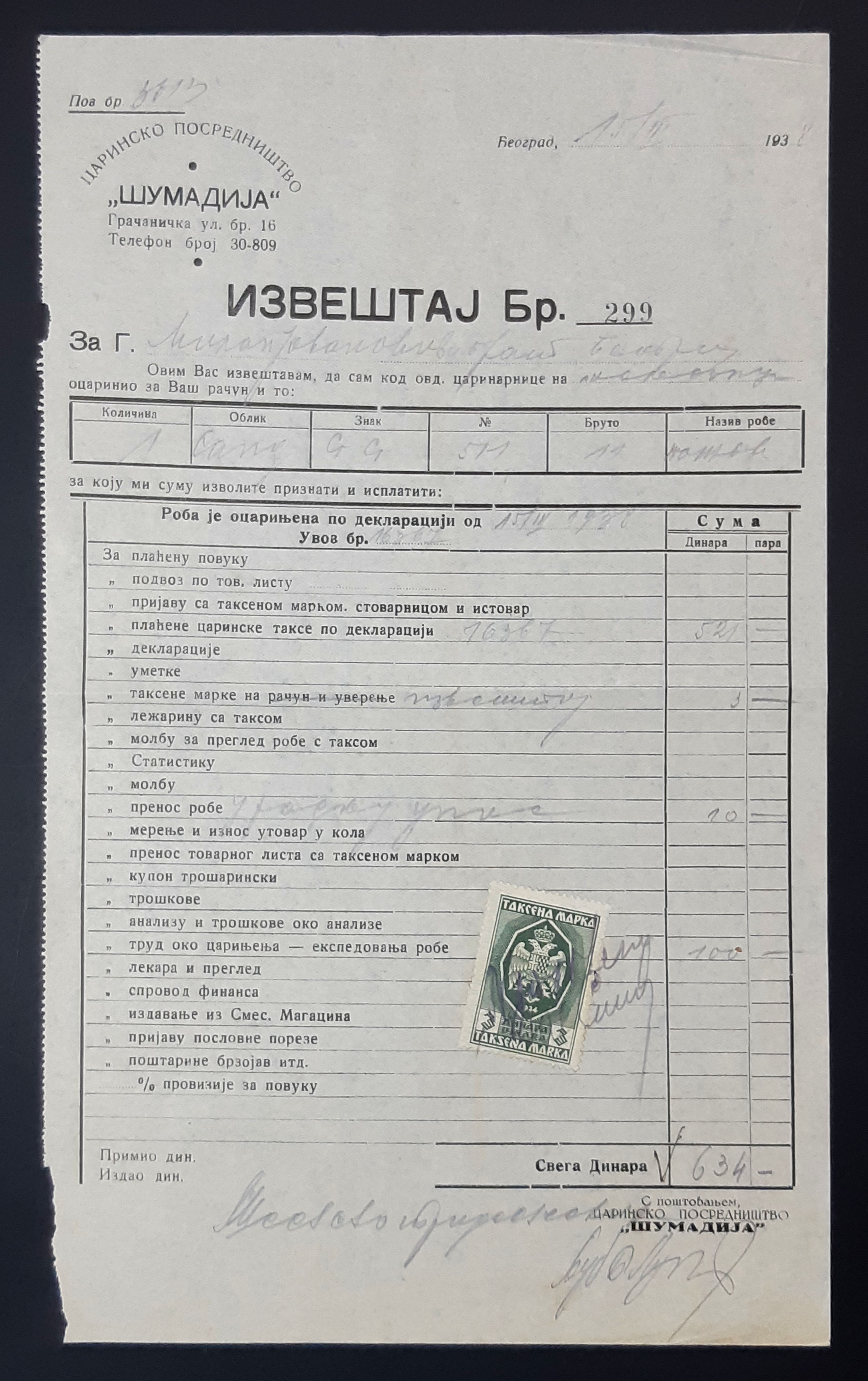 - Račun iz Kraljevine Jugoslavije, 1938. godina
