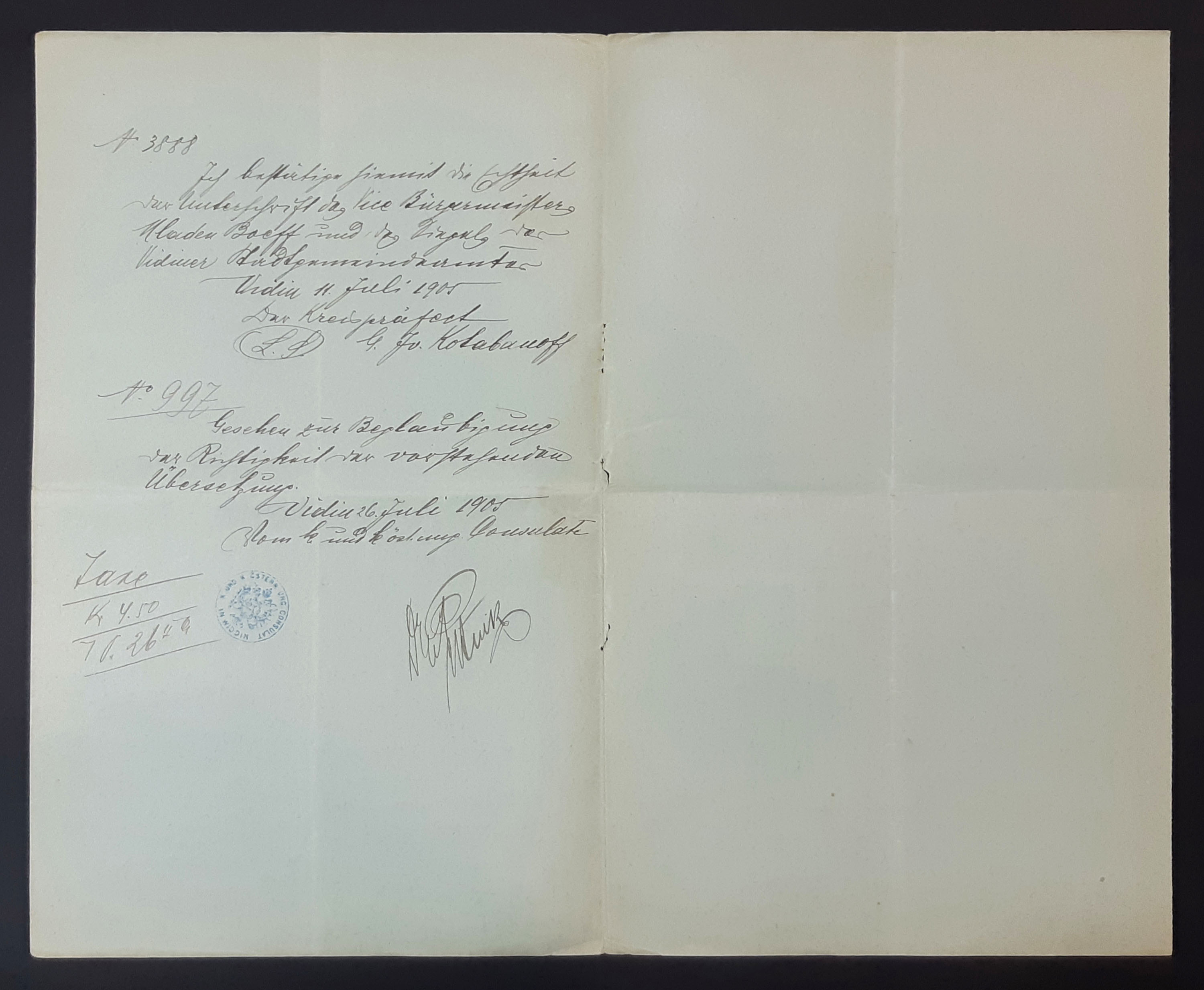 a na kraju overen u austrougarskom konzulatu u Vidinu (26. jula 1905.), da bi