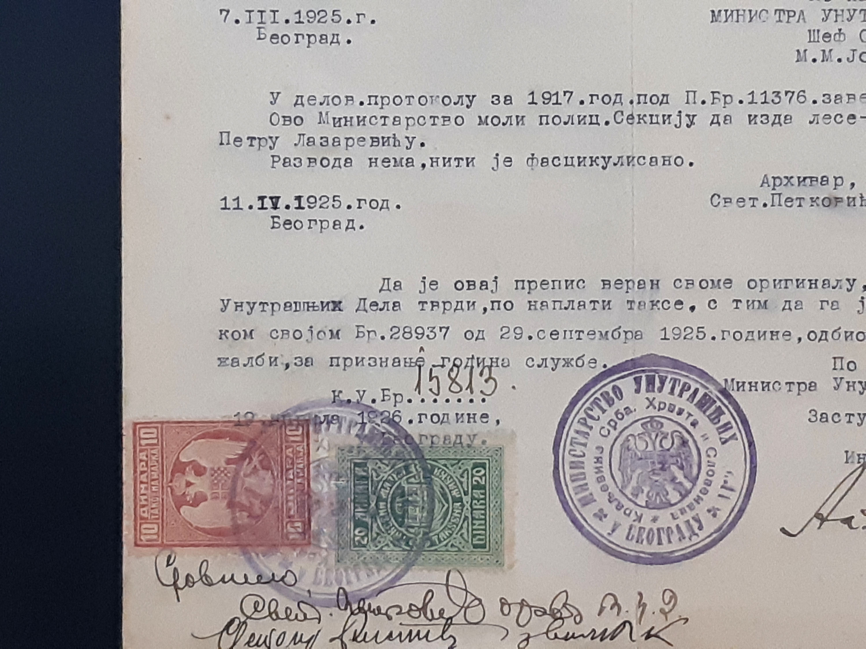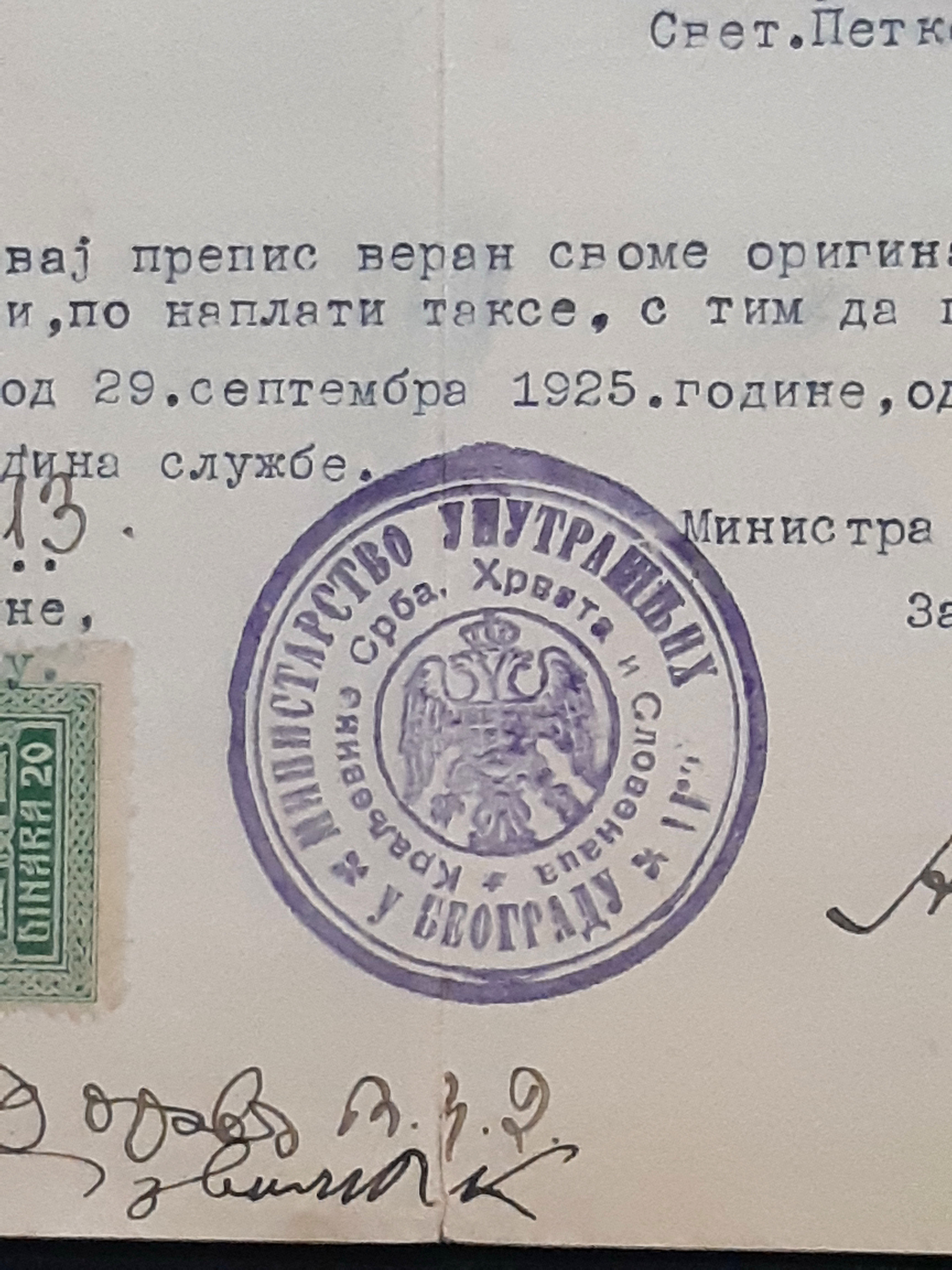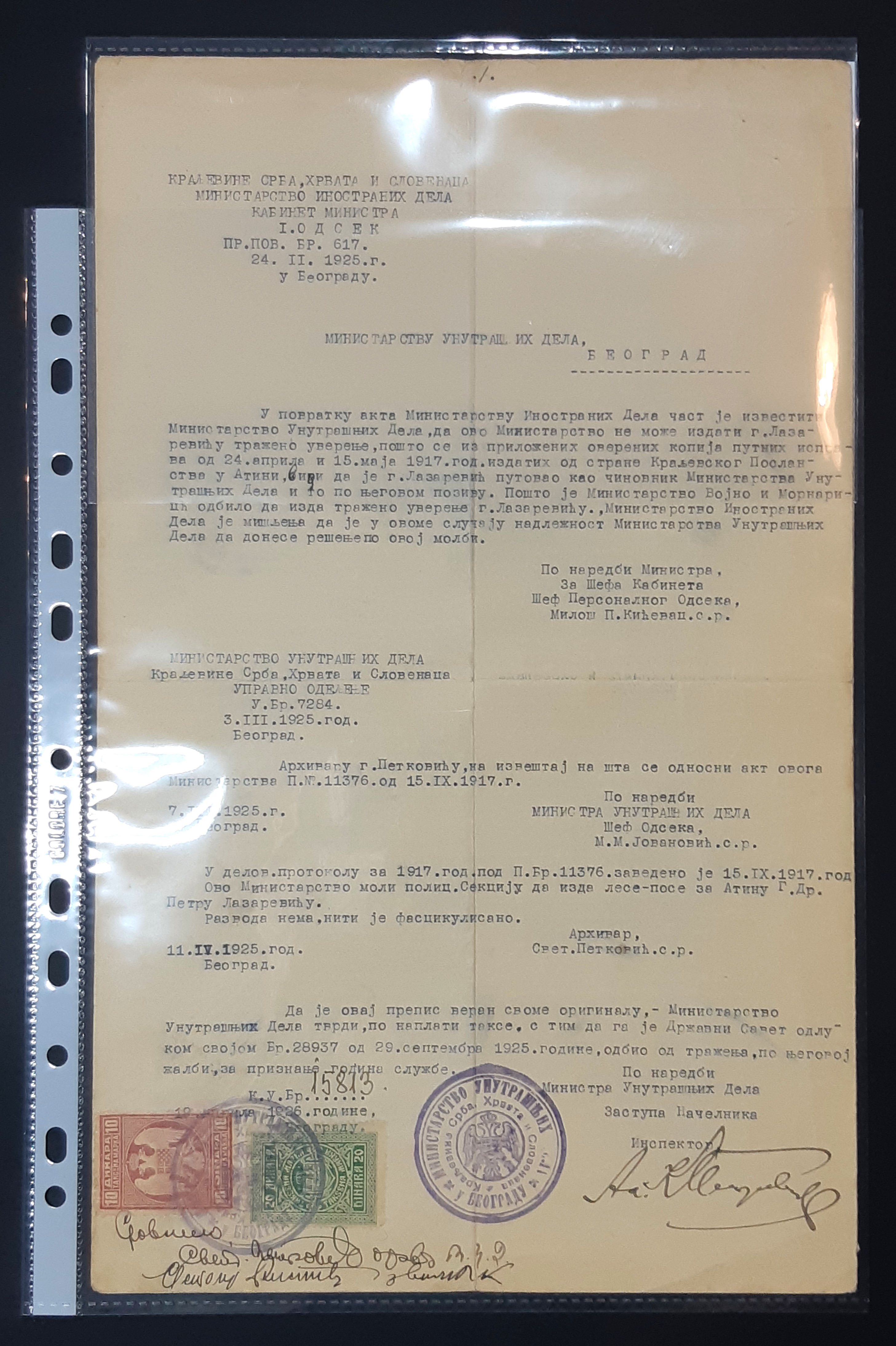 - Dokument ministarstva, Kraljevina S.H.S., 1925. godina