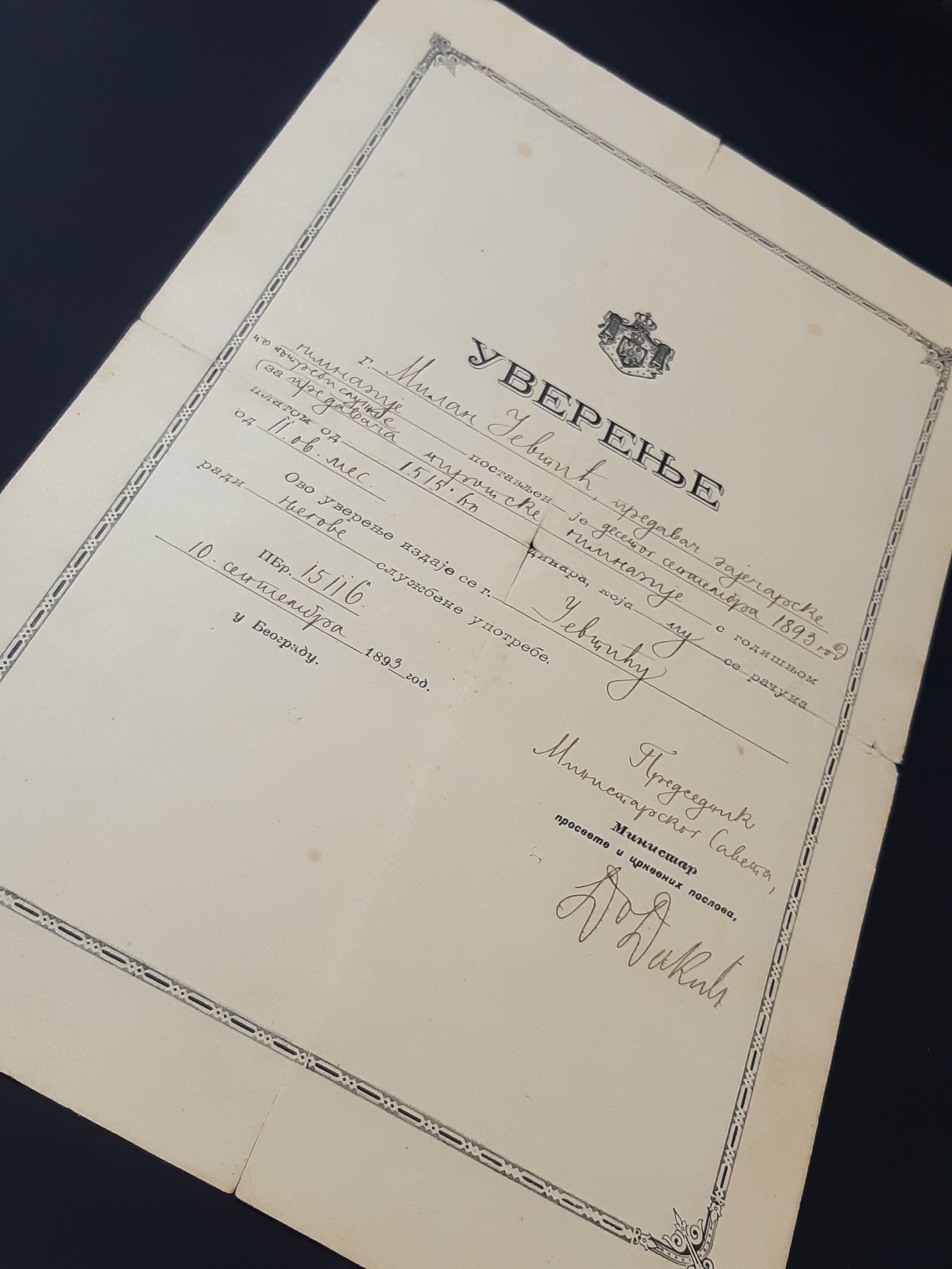 Ovo je veoma stari, istorijski vredan dokument iz vremena Kraljevine Srbije, izdat od zvanične institucije,