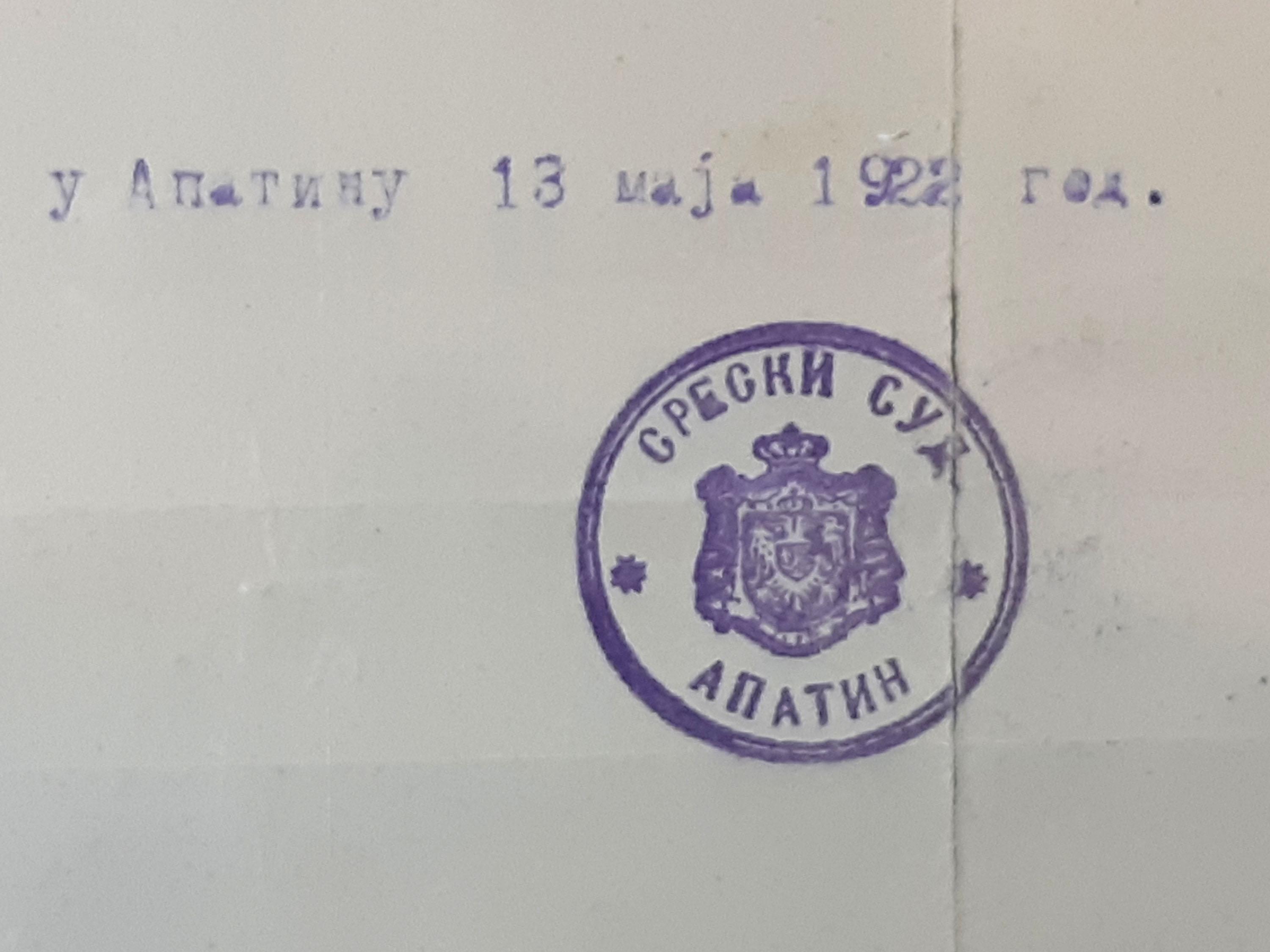 overen od strane suda u Apatinu, sa jasnim pečatima suda,