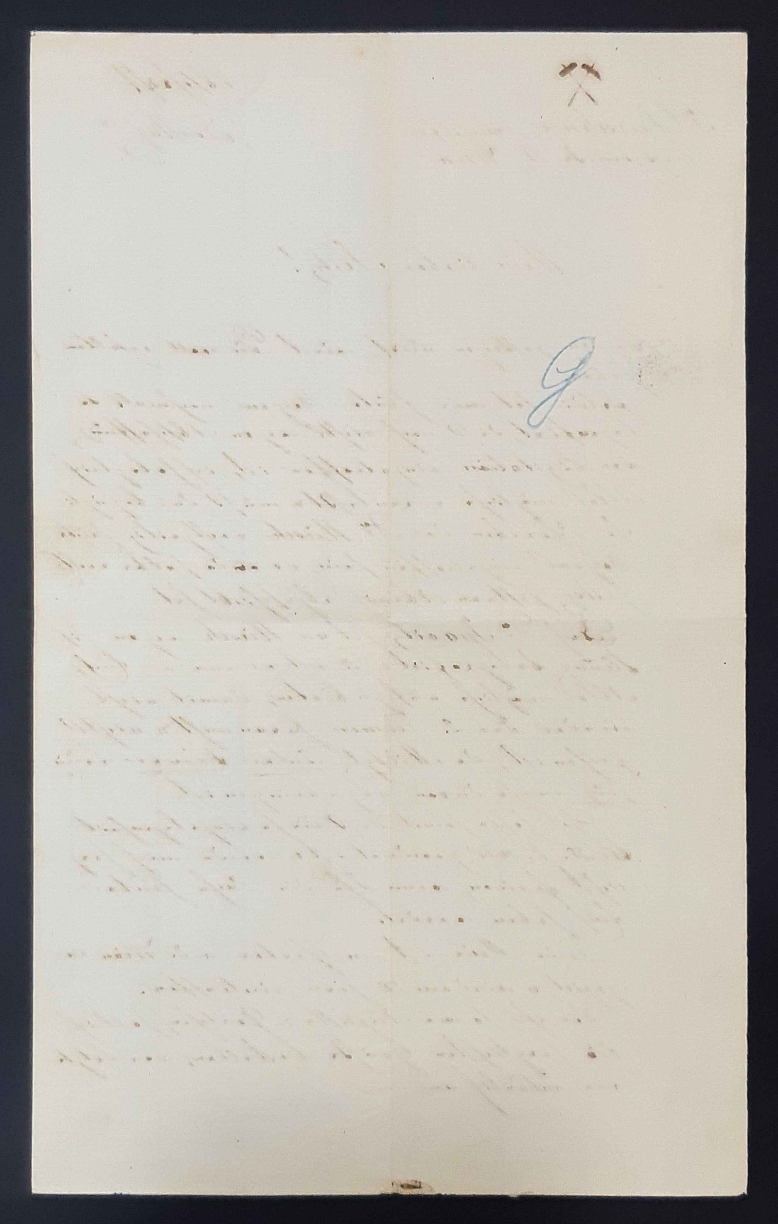 Zadnja stranica prazna, ispisano jedno slovo / inicijali, možda pošiljaoca ili